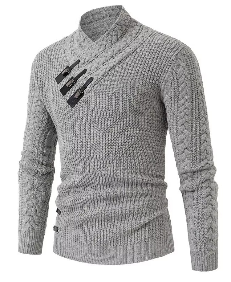Herren-Kaschmirpullover mit Lederknopf-Schrägkragen
